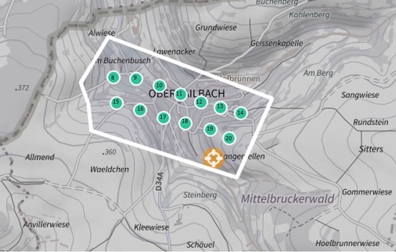 Localisation des prises de vues des photos aériennes de 8 à 20 datées du 25.09.1946 :
