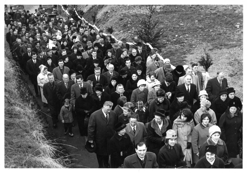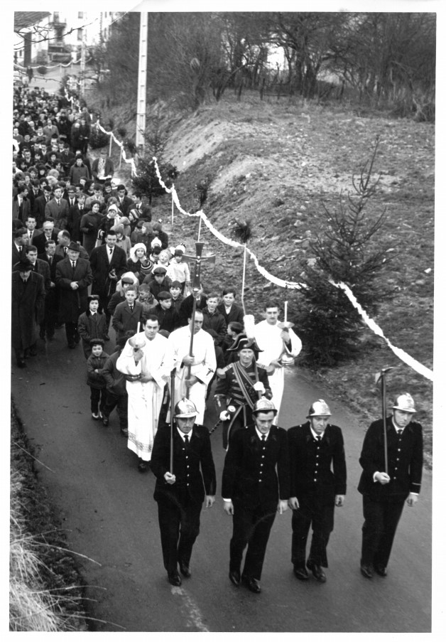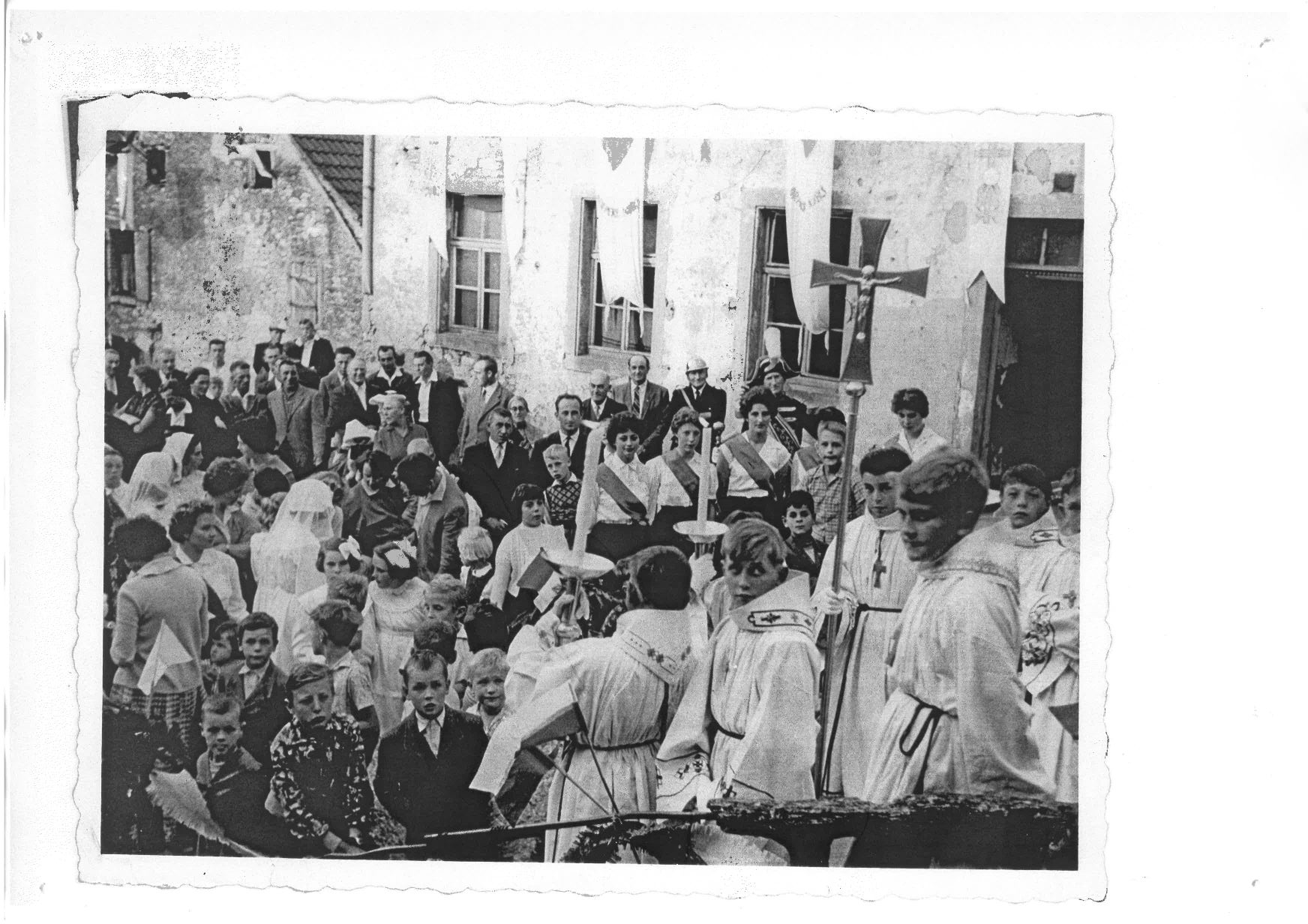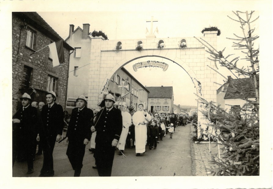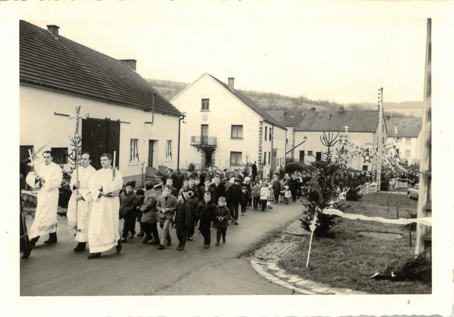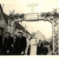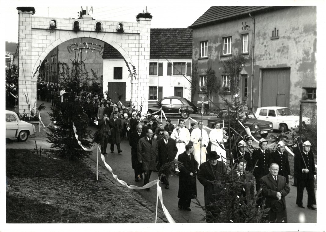 Arrivées en gare de Petit-Rederching, le cortège les accompagna jusqu'à l'église.