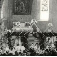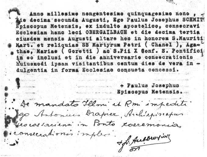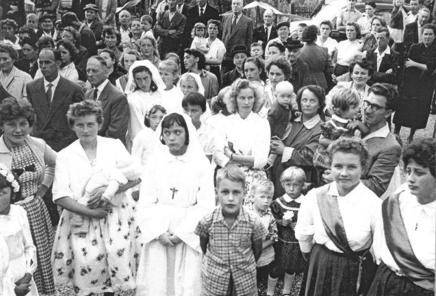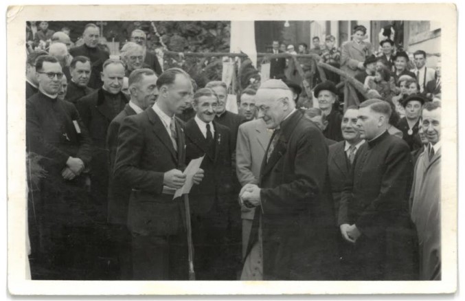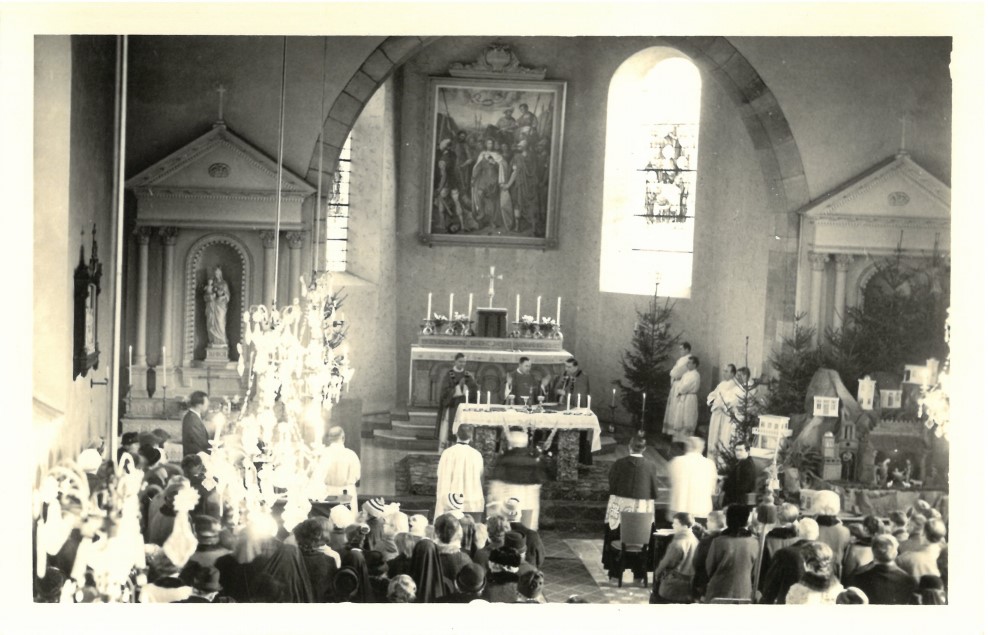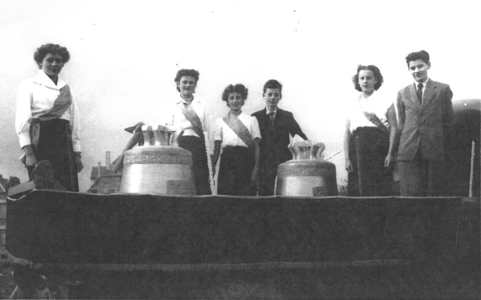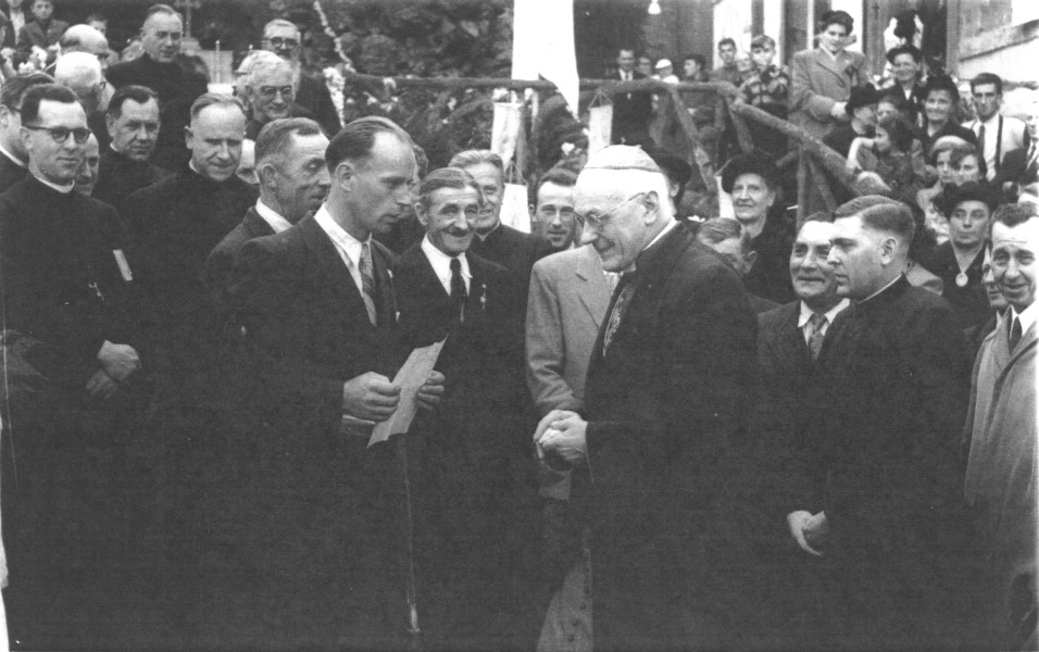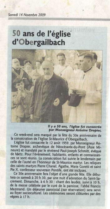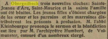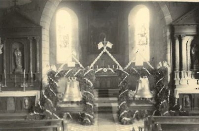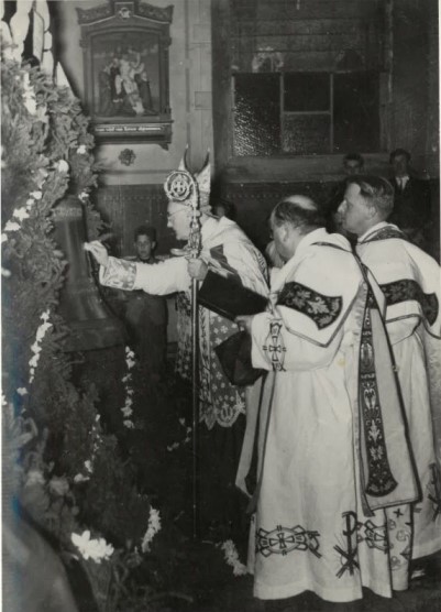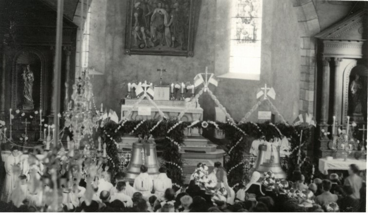 La consécration des cloches 17 octobre 1954 : l'évènement, la présentation de la cloche St Maurice et la St Wendelin.