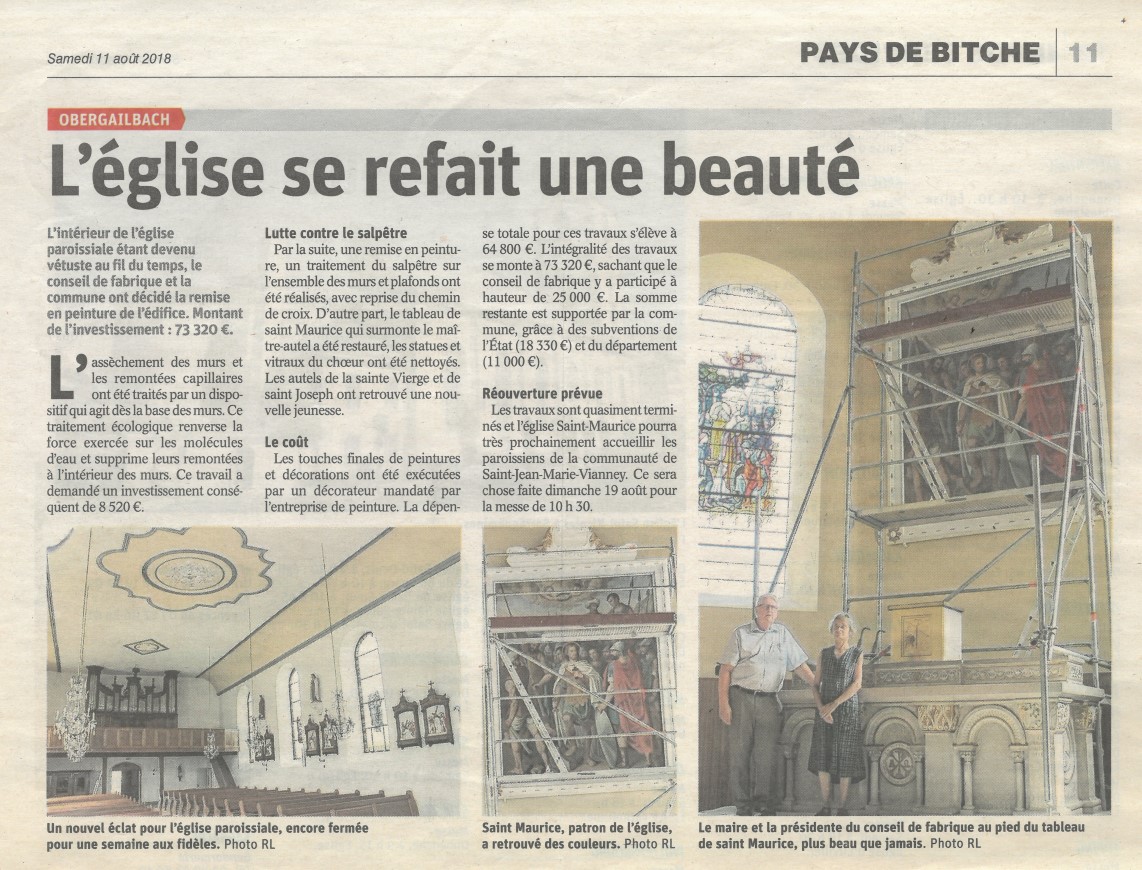 "L'église se refait une beauté" article paru dans le "Républicain Lorrain" le 11 août 2018