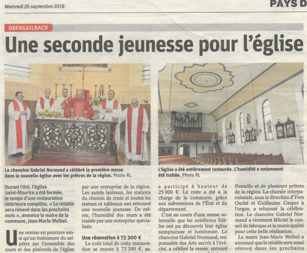 Article du 26 septembre 2018 du Républicain Lorrain : "Une seconde jeunesse pour l'église"