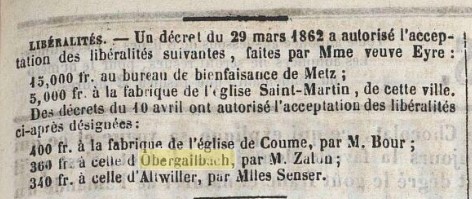 Article publié le 19 avril 1862 dans L'indépendant : journal politique, industriel et agricole du département de la Moselle
