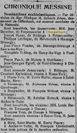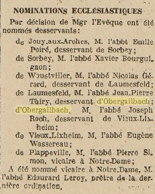 De l'Abbé Jean-Pierre Thiry à l'Abbé Joseph Roch : article paru dans "Le Messin" le 29 juillet 1928