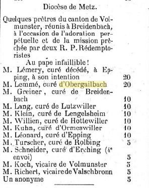 Abbé Joseph Lemmé : article du journal "L'Univers" publié le 5 juin 1870