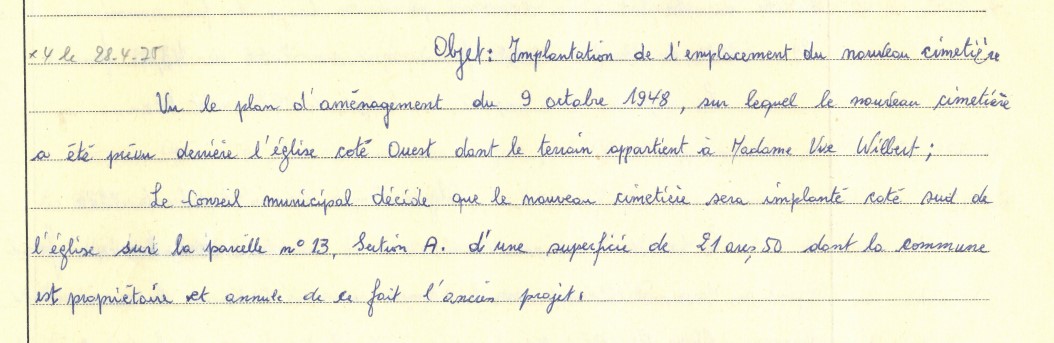 Délibération du 25 avril 1975 sur l'implantation du nouveau cimetière