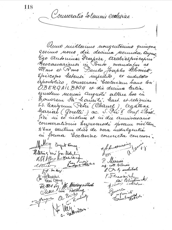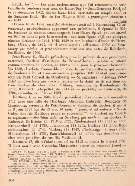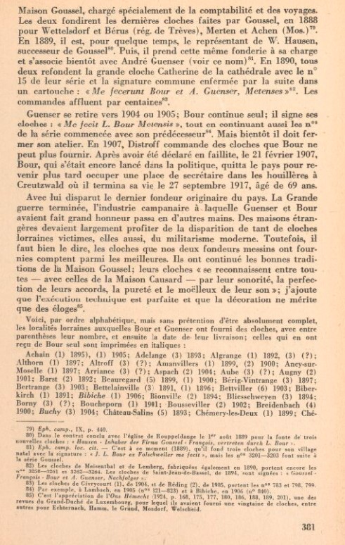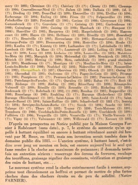 Origine des cloches d'avant la Grande Guerre : d'après le livre "Etudes campanaires mosellanes" écrit par R. S. Bour et paru en 1947, les 2 cloches St Mauritius et Donatus proviennent de la maison Edel en 1826 et l'Immaculée Conception de la maison Goussel en 1897.