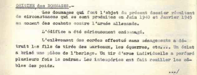 L'horloge : dommages dus aux bombardements de 1940 et 1944