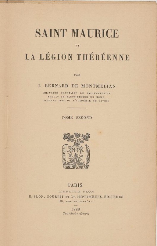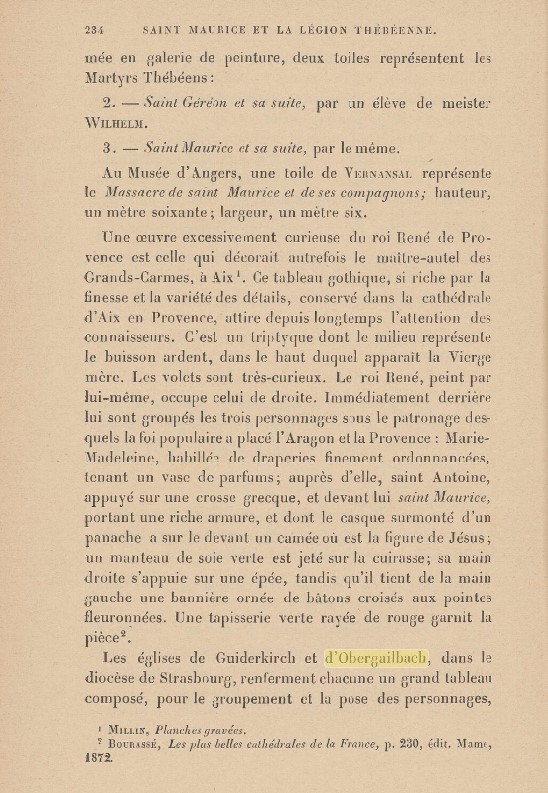 Extrait du livre "Saint Maurice et la légion thébéenne" par J. Bernard de Montbélian paru en 1888 : liste des églises de France dédiées à St Maurice
