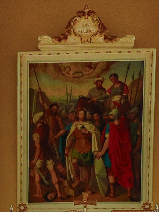 Accroché dans le chœur de l'église, ce tableau est mentionné dans le livre "Saint Maurice et la légion thébéenne" volume 2 écrit par J. Bernard de Montbélian et paru en 1888 : pages 234 et 235
