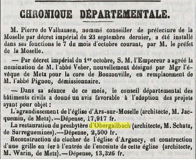 Article du "Moniteur de la Moselle" paru le 13 octobre 1858