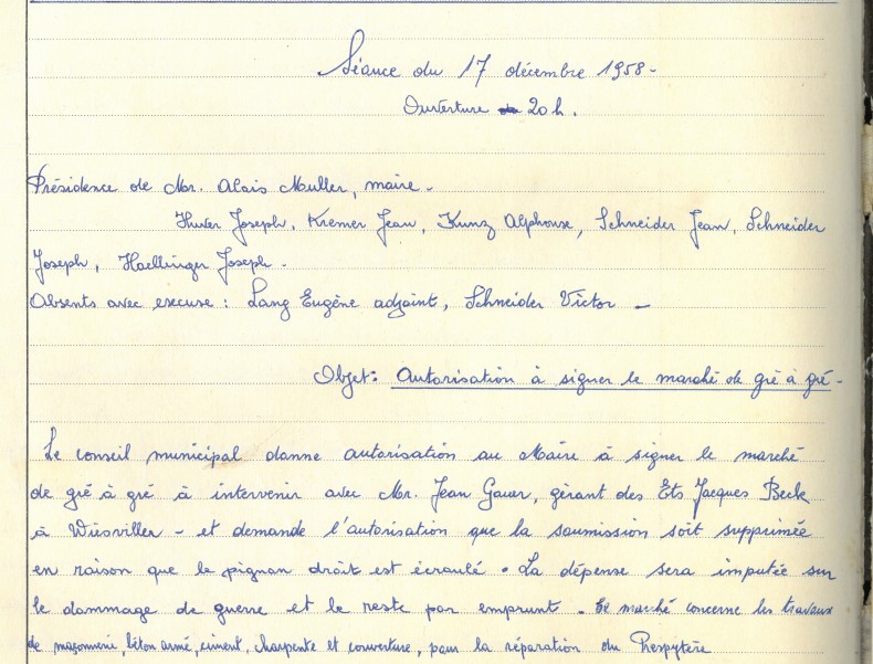 Ecroulement du pignon droit : délibération du 17 décembre 1958