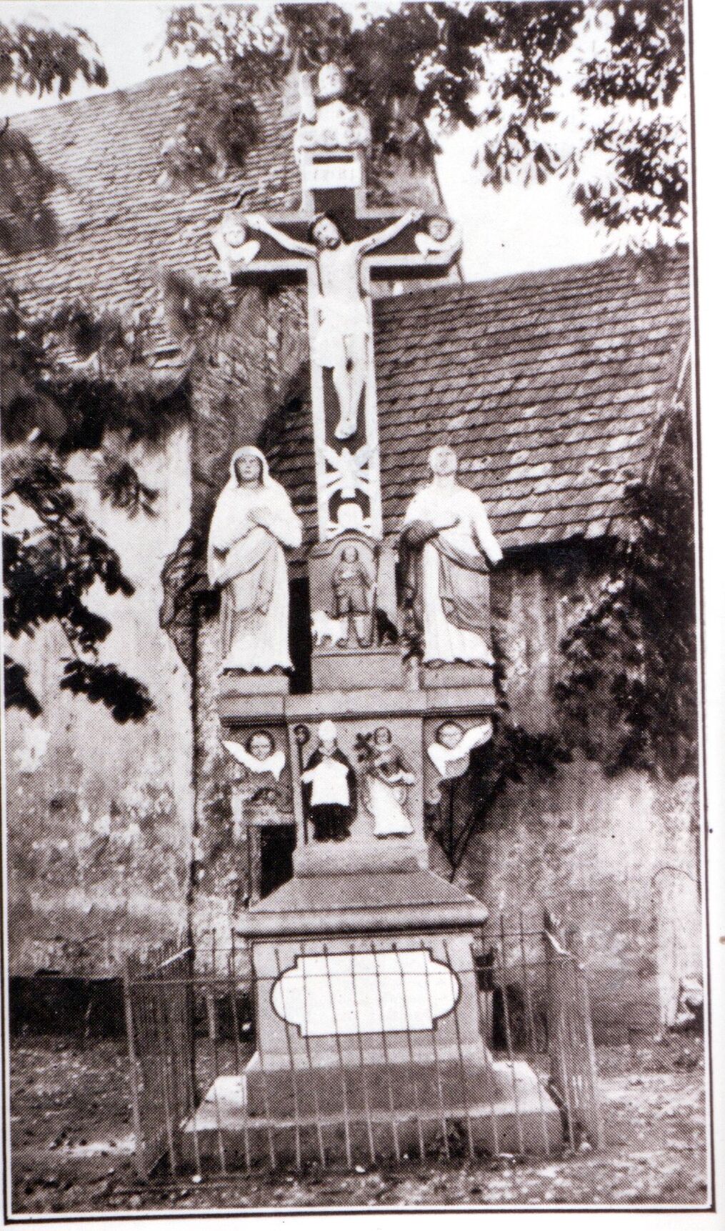 Le calvaire se trouvait au centre du village, au niveau de l'actuel abribus et de la mairie, à l'intersection des rues, Liberté Montagne et Fontaines, devant la maison "Mèschels".