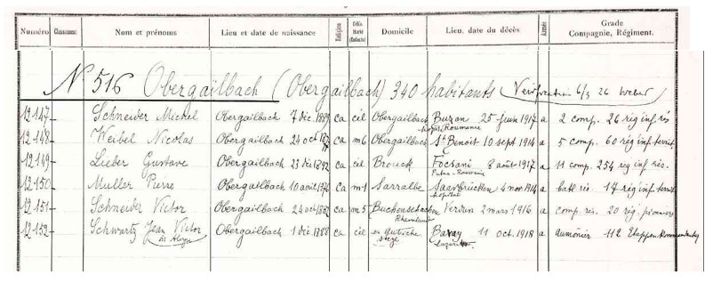 - nés hors d'Alsace-Lorraine, notamment en Allemagne, mais domiciliés dans la commune.