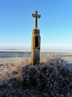 La croix est ornée de la Sainte Vierge et de plusieurs croix gravées.