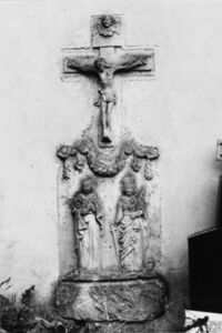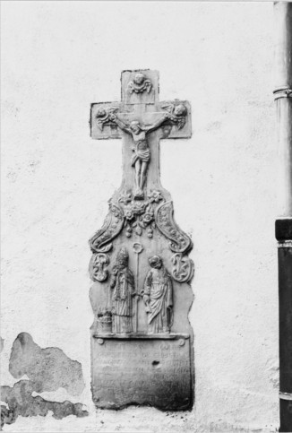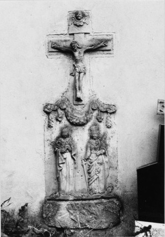 Tombeau en grès de Jean Nicolas Grau de 1838. Y est inscrit" CI GIT JEAN NICOLS GRAU EPOUX DE CHRISTINE MANGINOT VIVANT INSTITUTEUR A OBERGAILBACH NE A WALSCHBRONN LE 15 FEVRIE 1804 DECEDE LE 4 JUIN 1838 ET REGRETTE DE TOUTE LA COMMUNE. REQUIESCAT IN PACE." Il était également chantre. L'état du tombeau s'est beaucoup dégradé depuis 1976.